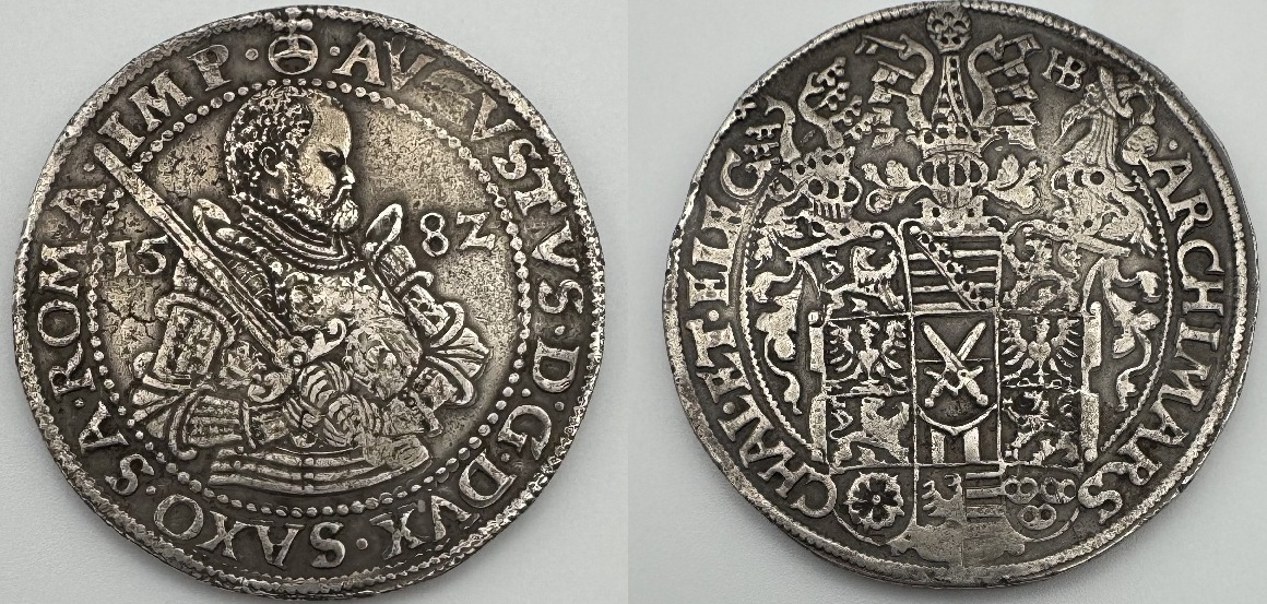 SAXONY: August (1553-1586) 1582 Taler (28.60g), Dresden Mint; Dav 9798, Schnee 725. About Extremely Fine. *pending*