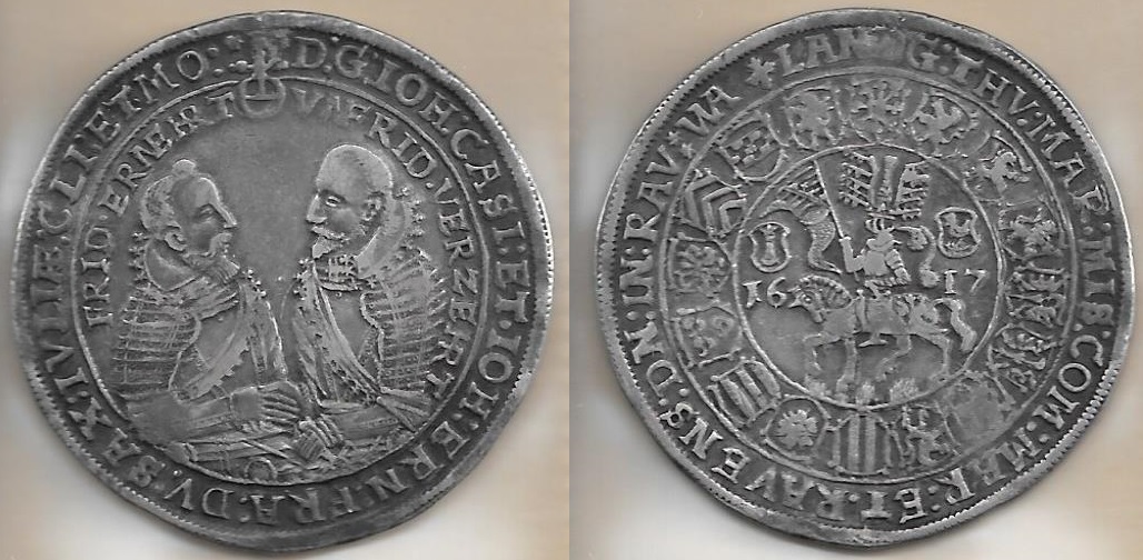 SAXE-COBURG-EISENACH Johann Casimir & Johann Ernst II (1572-1633) 1617-WA Taler; Dav 7429