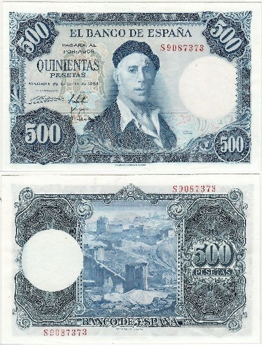 Spain 1954 500 Pesetas, Pick 148a, B614a