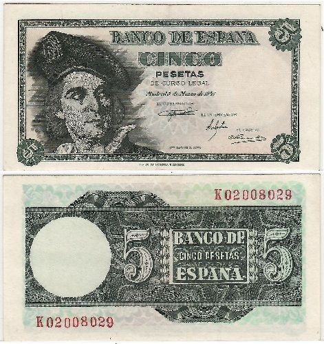 > Spain 1948 5 Pesetas, Pick 136a, B602a