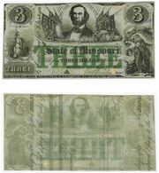 State of Missouri 1862 3 Dollars, CR-7A. Cream paper, printed on back of Bills of Exchange. Rarity 9. Very Fine, but with close cut.