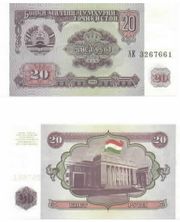 Tajikistan 1994 20 Rubles, Pick 4a. Pack of 100 notes.