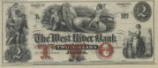 VERMONT: Jamaica ND 2 Dollars, West River Bank, Haxby VT115-G4b. Very Choice About Uncirculated (this is actually a Crisp Uncirculated note with a pinhole at top left corner) **SOLD OUT**