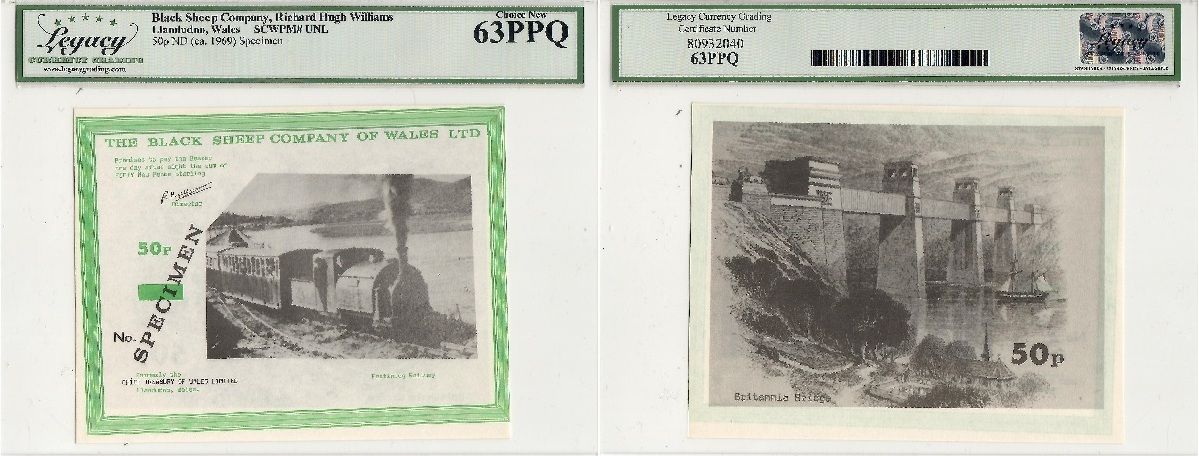 > Wales: Black Sheep Company of Wales ND (c.1969) 50 Pence, Specimen Note